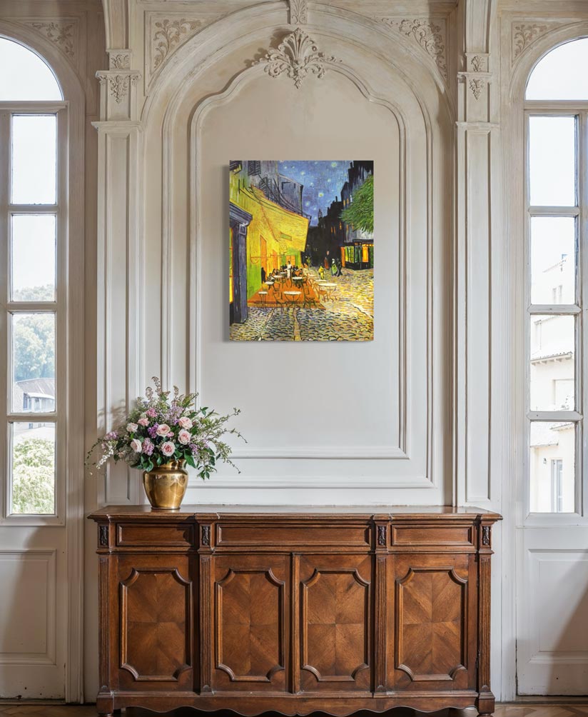 This giclée artwork is printed on luxurious 370gsm 100% cotton canvas using long-lasting Lucia pigment inks, fade-resistant for over 100 years. Each print is protected with a UV-resistant archival varnish, stretched by hand over a sturdy wooden stretcher frame, and crafted in the EU with gallery-level care. Perfect for art lovers, cozy interiors, or anyone wishing to bring Van Gogh’s enchanting night scenes into their home.