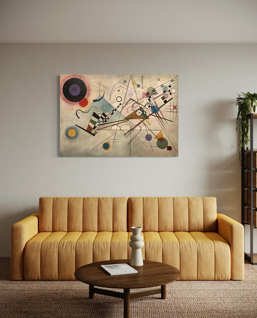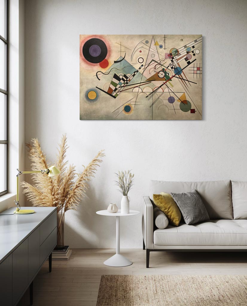 Our giclée wall art print faithfully reproduces every vibrant hue and crisp line of this modern classic. Printed on luxurious 370gsm 100% cotton canvas, this abstract canvas art print offers exceptional color saturation and fine detail true to Kandinsky’s original vision. Lucia pigment inks provide fade resistance for over a century, while a UV-protective archival varnish safeguards the surface. Each fine art canvas print is hand-stretched on a sturdy wooden frame and crafted in the EU to gallery-quality standards.