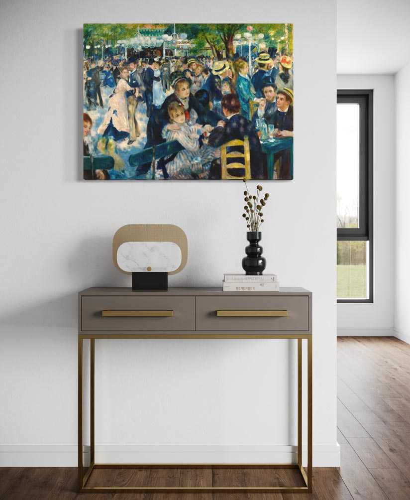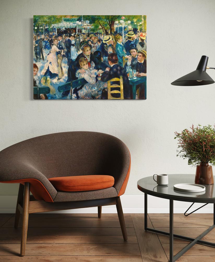 Printed as a high-quality giclée on 370gsm 100% cotton canvas, this artwork bursts with color and detail true to Renoir’s original vision. Fade-resistant Lucia pigment inks ensure the vibrancy lasts over a century, while a protective UV varnish safeguards the surface. Hand-stretched over a solid wooden frame and crafted in the EU with meticulous care, this piece adds a lively touch of Impressionist elegance to any interior, celebrating the timeless spirit of Paris.