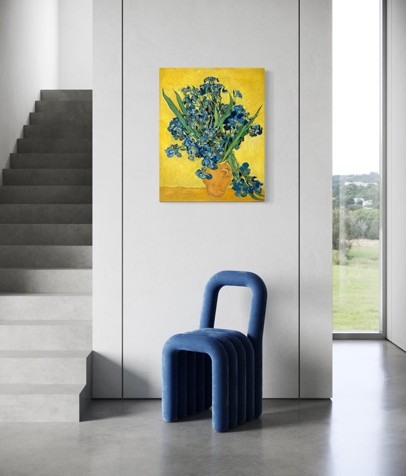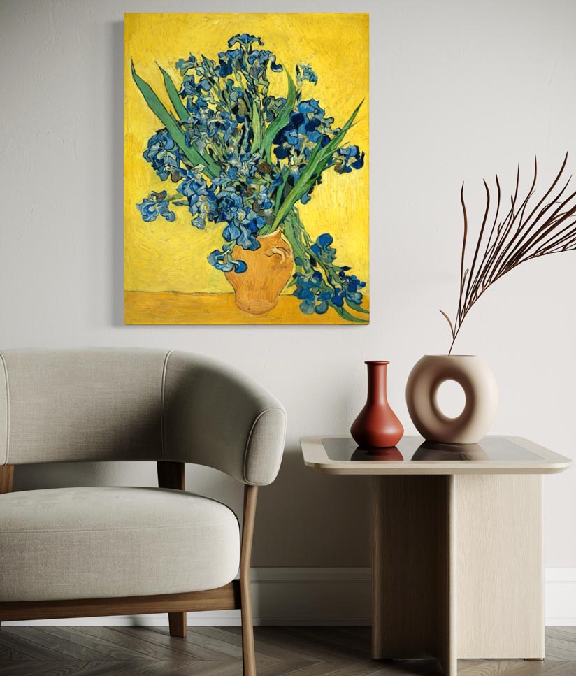 Experience the vivid brilliance of Post-Impressionism with “Irises” by Vincent van Gogh, painted in 1890 during his stay in the asylum at Saint-Rémy. Exploding with expressive brushstrokes, swirling textures, and intense contrasts, Van Gogh’s irises burst to life against a radiant yellow background, symbolizing both beauty and fleeting fragility. This masterpiece embodies Van Gogh’s emotional depth and unique vision of the natural world.