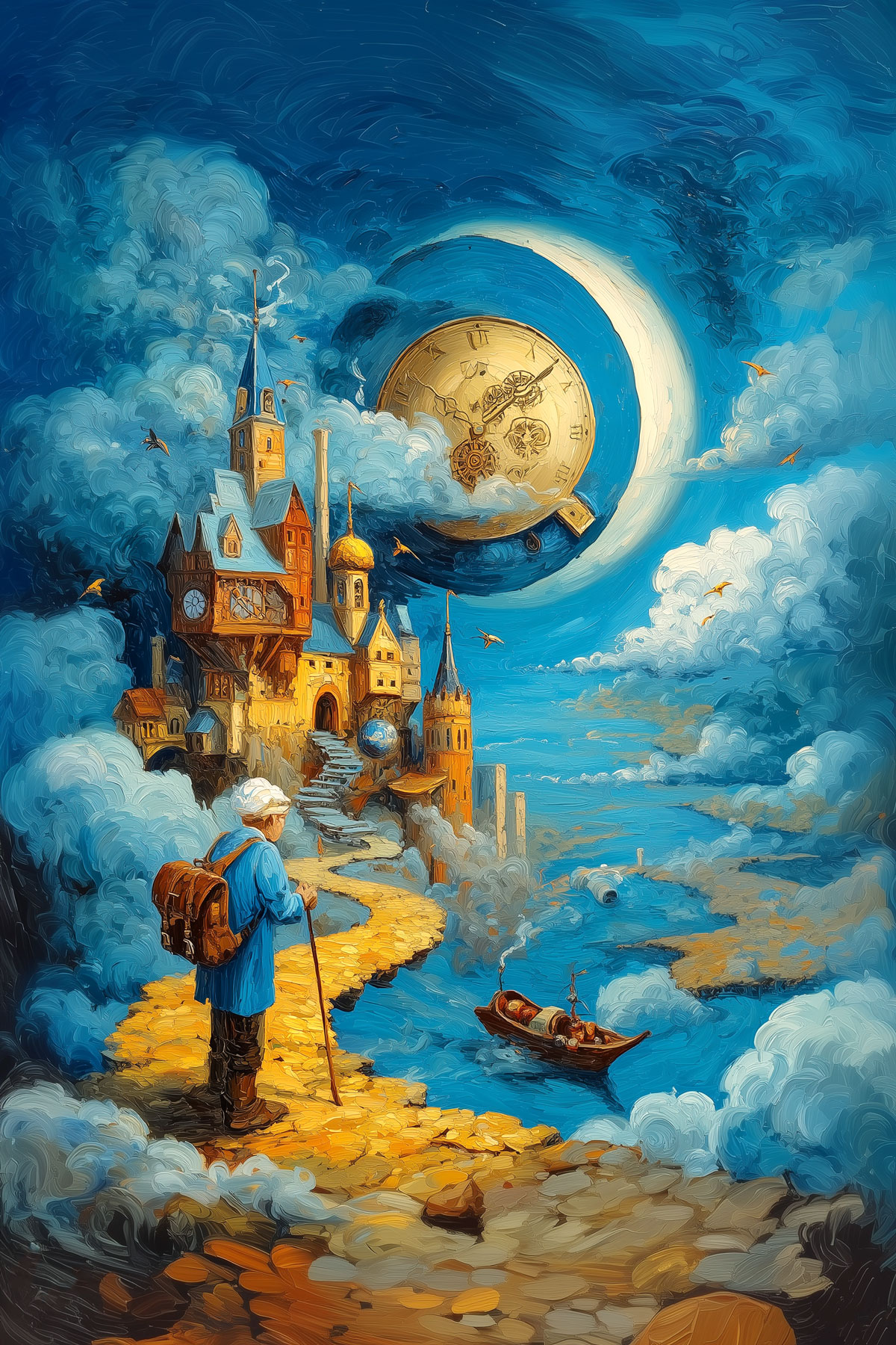 "Path of Time" – Surreal Fantasy Journey Through Clouds and Clockwork Skies