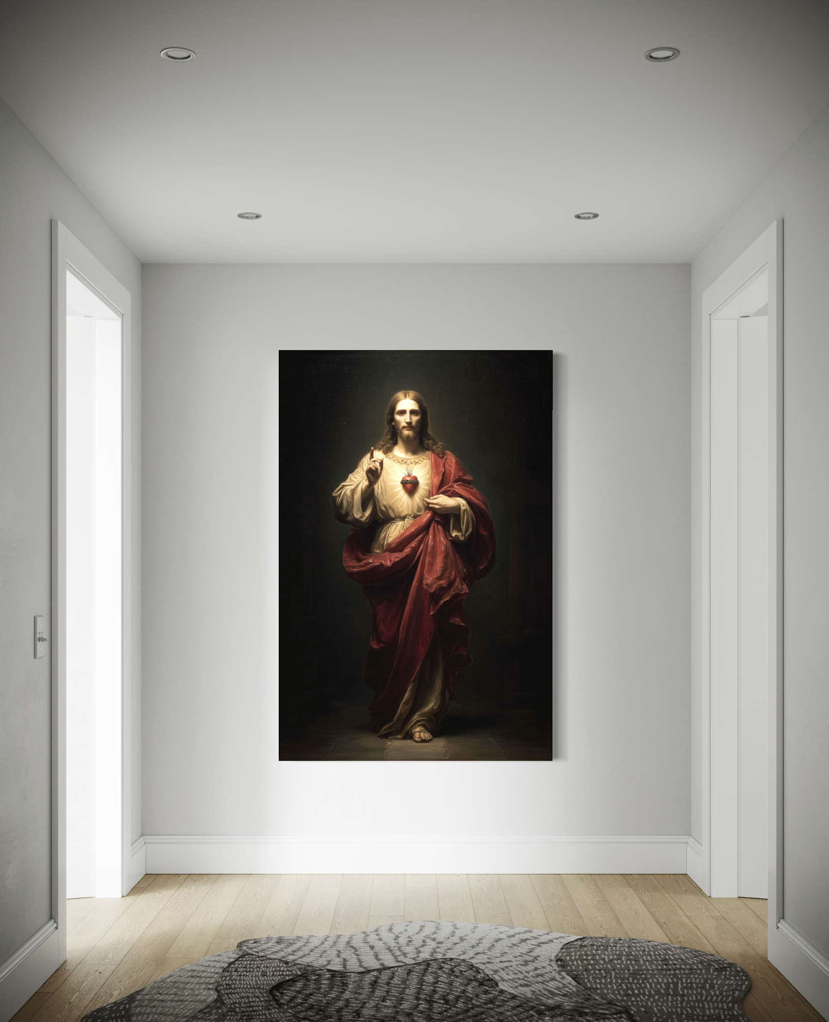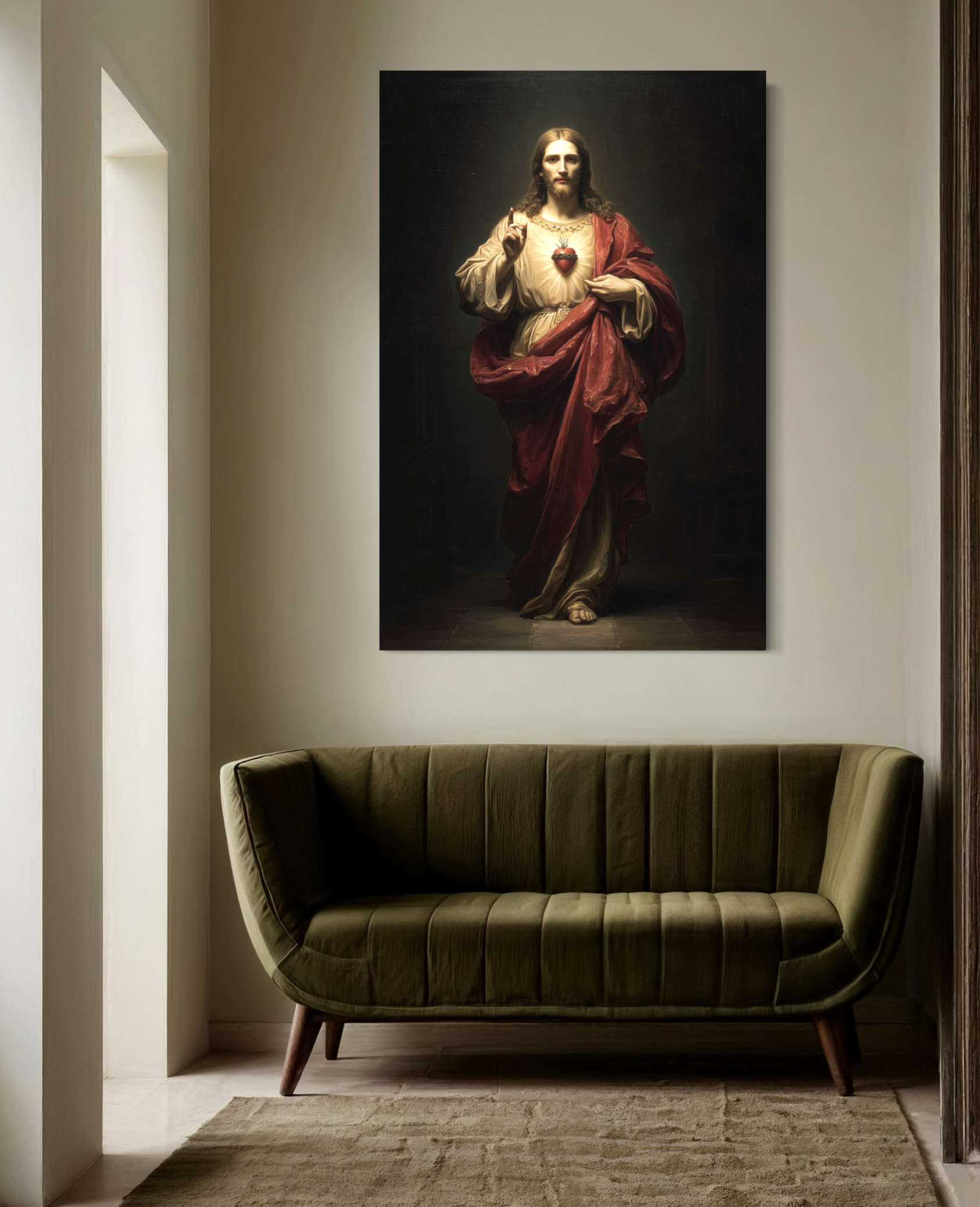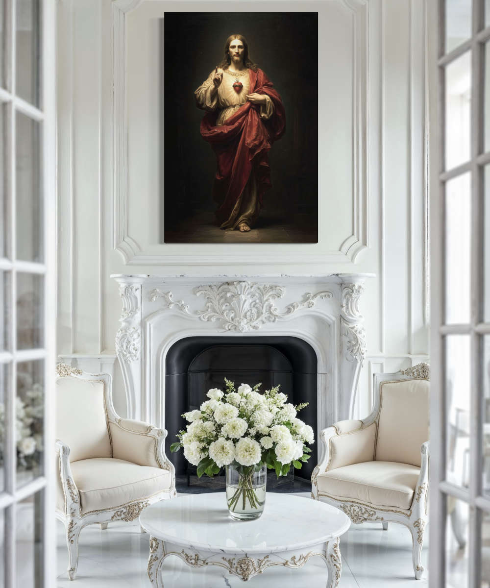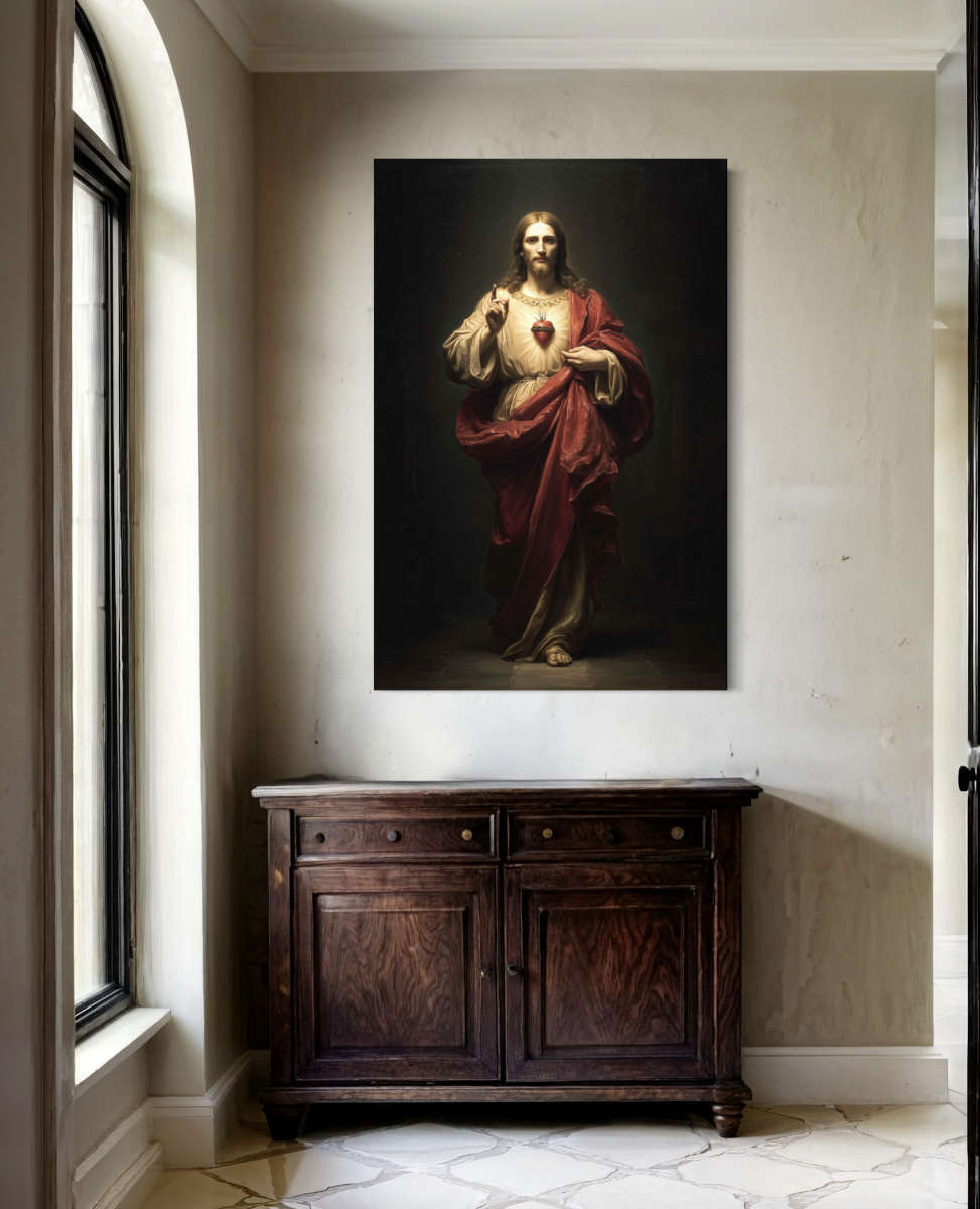Experience the spiritual grace and divine presence of the Sacred Heart of Jesus in this classical giclée canvas print. Radiating compassion and holiness, Christ is depicted with His glowing Sacred Heart — a universal symbol of boundless love, sacrifice, and faith.