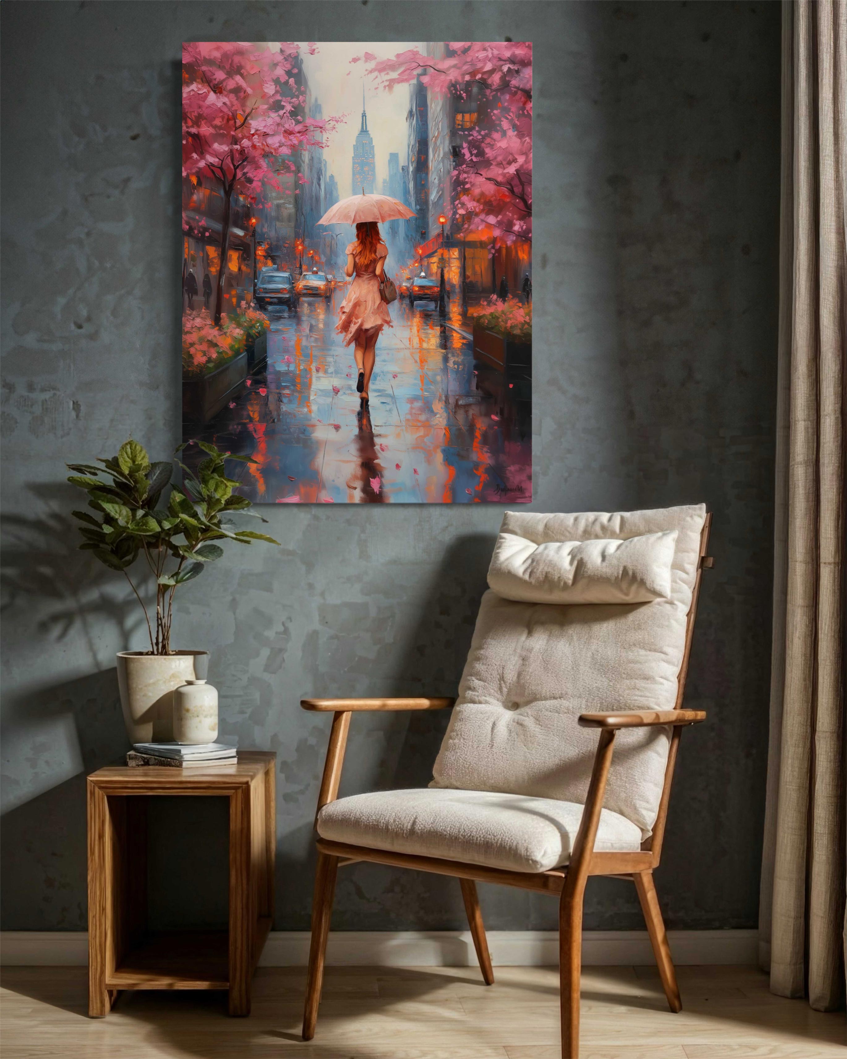 Spring Rain in Manhattan – Romantic Cityscape Giclée Canvas 75×90 cm | SALE