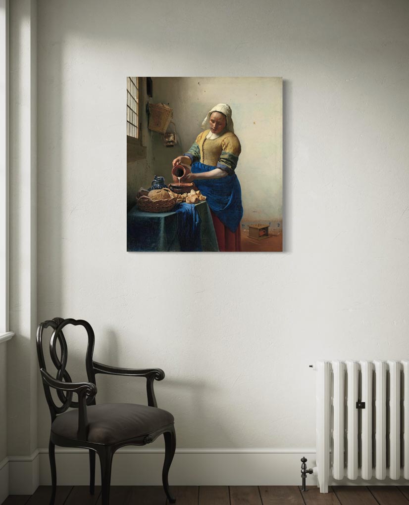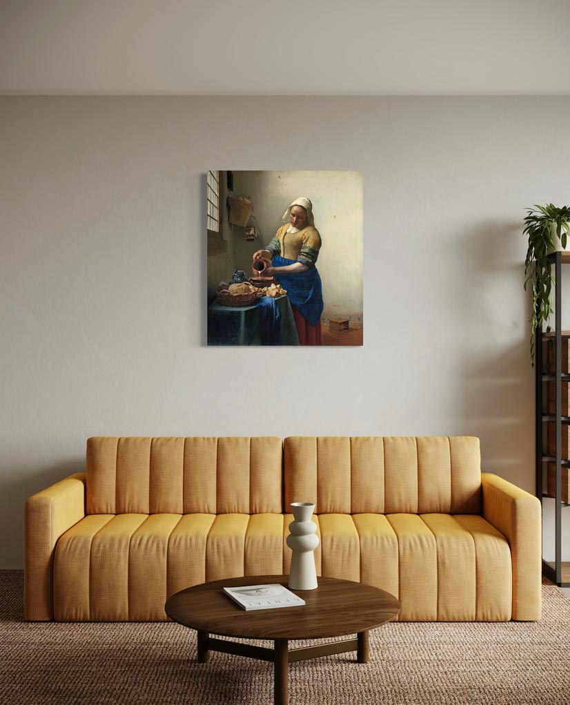 Our giclée wall art print brings this iconic scene into your home in breathtaking detail. Printed on luxurious 370gsm 100% cotton canvas, this Vermeer canvas art print reveals every delicate brushstroke and subtle color transition true to the original painting. Long-lasting Lucia pigment inks ensure brilliant, fade-resistant color for over a century, while a UV-resistant archival varnish protects the surface. Each fine art canvas print is hand-stretched over a sturdy wooden frame and meticulously crafted in the EU for gallery-quality presentation.